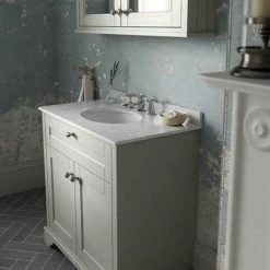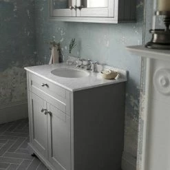 Old London 800mm Cabinet & Single Bowl White Marble Top – Storm Grey