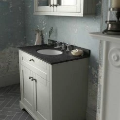 Old London 800mm Cabinet & Single Bowl Black Marble Top – Storm Grey