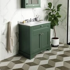 Old London 800mm Cabinet & Single Bowl White Marble Top – Hunter Green