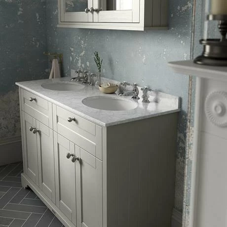 Old London 1200mm Cabinet & Double Bowl Grey Marble Top – Timeless Sand
