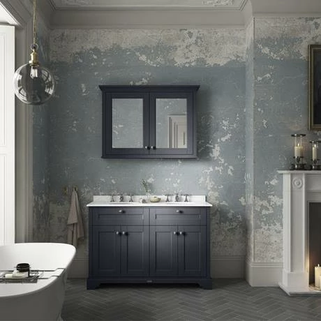 The striking finish of this Twilight Blue 1200mm unit will add contrast and impact to your traditional bathroom. It features soft close doors which limits the daily wear and tear and provides a quieter closing action. The luxury White polished double marble top basin achieves a timeless, classic look. Ideal for creating a period look in your bathroom this furniture range with it’s clean classical design blends beautifully with Old London’s range of traditional bathroom furniture.