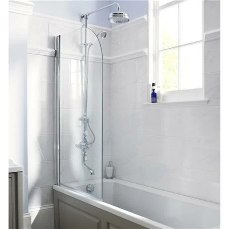 Choose the Old London Hinged Straight Curved Top Bath Screen for an elegant way to prevent bathroom splashes or spillages. Blending style with practicality, the 1435mm high hinged bath screen is made from hardwearing safety glass. Its polished chrome profile provides an understated finishing touch and it’s also fitted with barrel hinges that ensure you have easy access to your bath or shower. This charmingly traditional curved bath screen will look particularly arresting on an Old London Ascott rectangular bathtub.