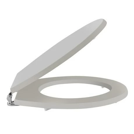 A high-quality traditional round stone grey wooden toilet seat with chrome hinges from period bathroom specialists Old London, ideal for creating a period look in your bathroom. Designed for use with Old London’s collection of Richmond Toilets. Comes with non-slip buffers.